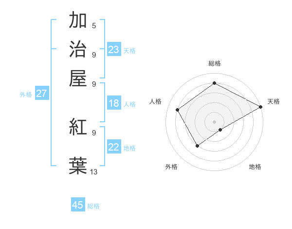 加治屋 紅葉さんを姓名の画数から五運を鑑定
