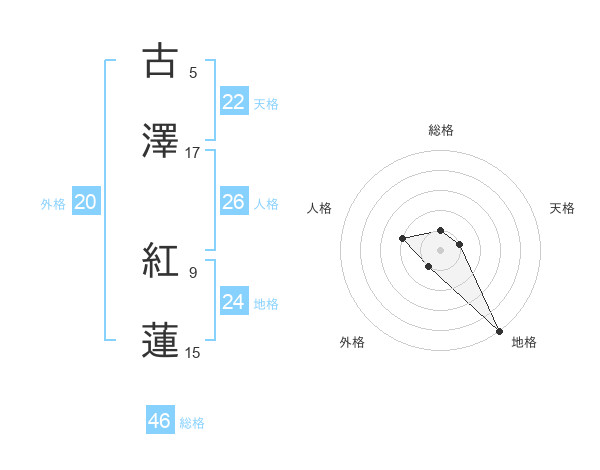 古澤 紅蓮さんを姓名の画数から五運を鑑定