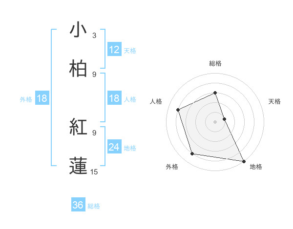 小柏 紅蓮さんの天格は12画の1点!