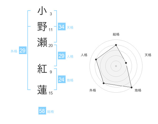 小野瀬 紅蓮さんを姓名の画数から五運を鑑定