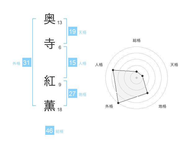 奥寺 紅薫さんの天格は19画の1点!