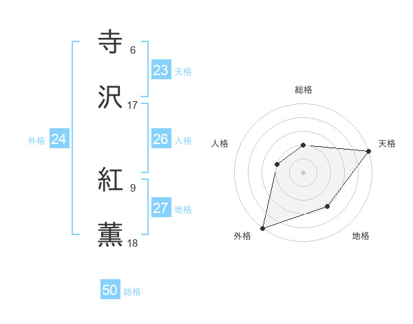 寺沢 紅薫さんの天格は23画の5点!