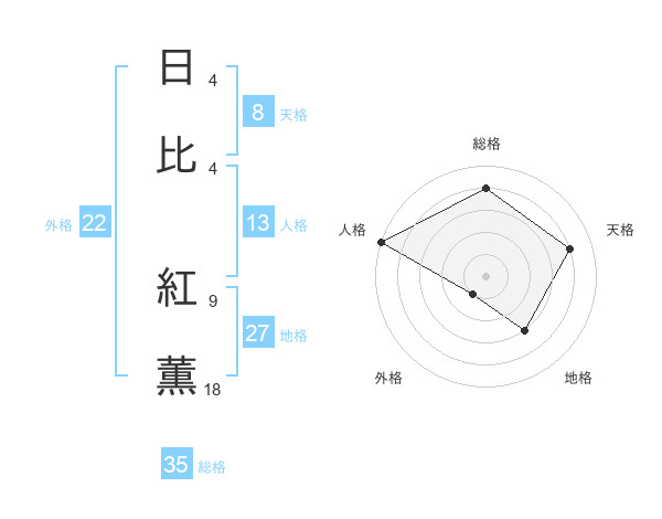 日比 紅薫さんを姓名の画数から五運を鑑定