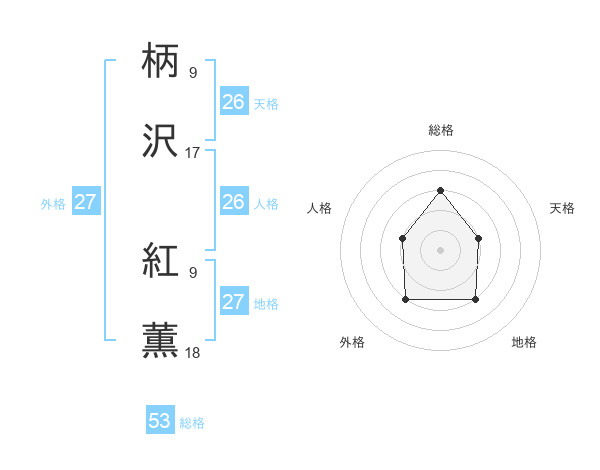 柄沢 紅薫さんの総格は53画の3点!
