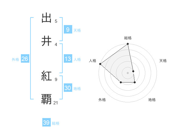 出井 紅覇さんを姓名の画数から五運を鑑定