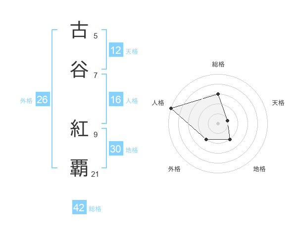 古谷 紅覇さんを姓名の画数から五運を鑑定