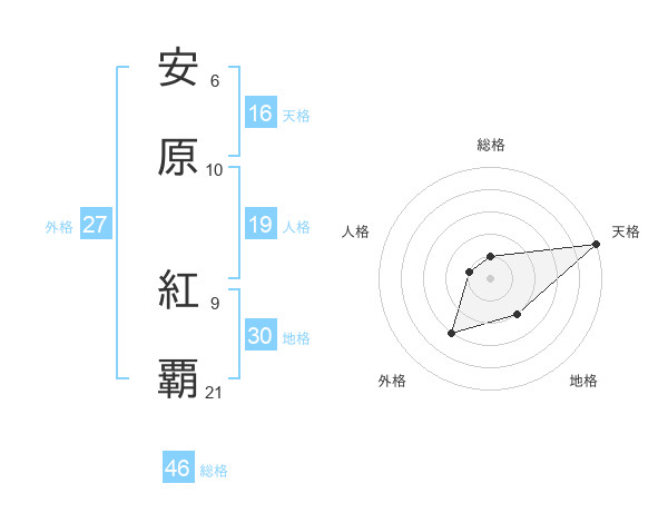 安原 紅覇さんを姓名の画数から五運を鑑定