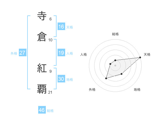 寺倉 紅覇さんを姓名の画数から五運を鑑定