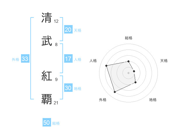 清武 紅覇さんの総格は50画の2点