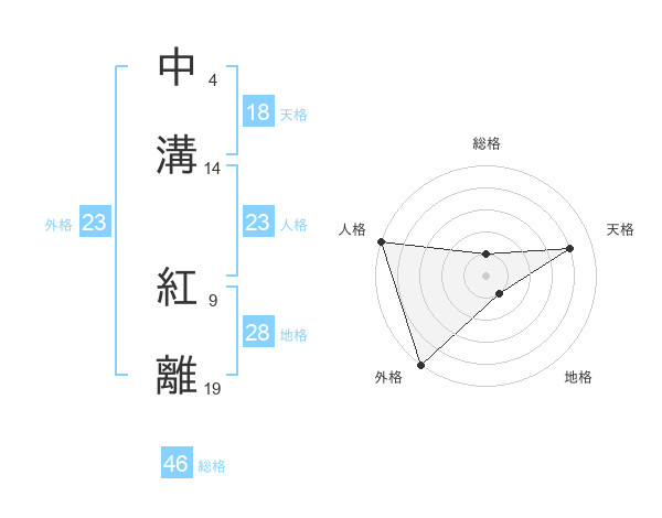 中溝 紅離さんの外格は23画の5点!