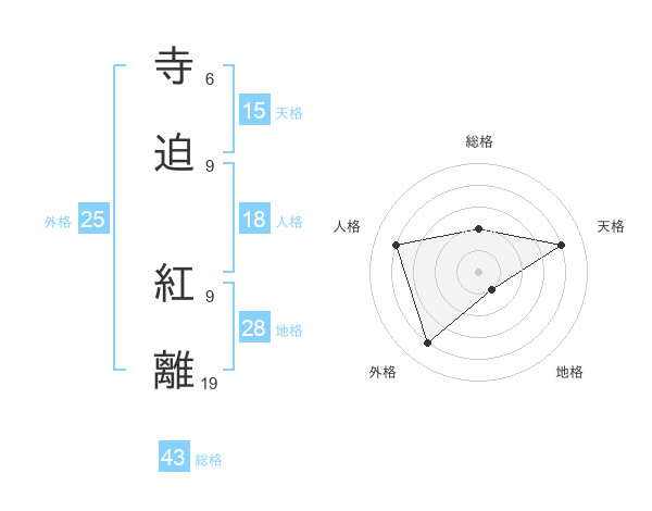 寺迫 紅離さんの外格は25画の4点!