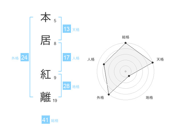 本居 紅離さんの天格は13画の5点!