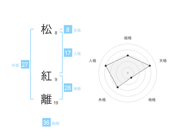 松 紅離さんの外格は27画の3点!