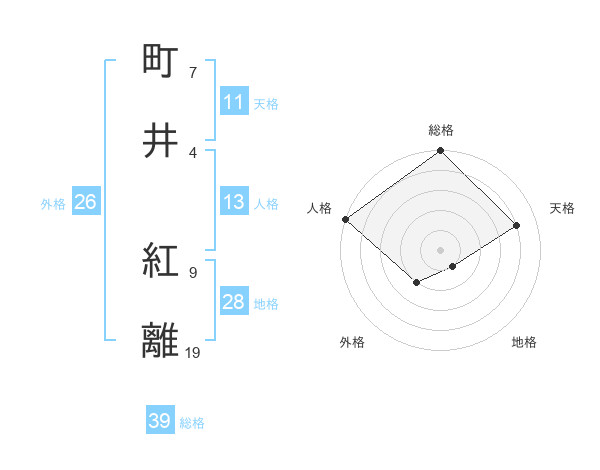 町井 紅離さんの総格は39画の5点!
