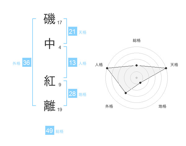 磯中 紅離さんの総格は49画の2点!