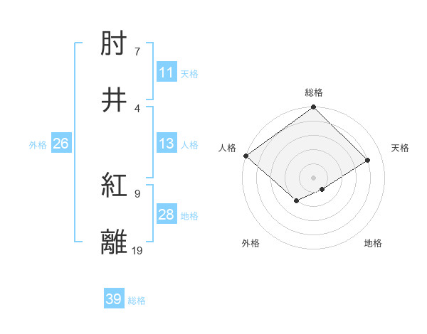 肘井 紅離さんの総格は39画の5点!