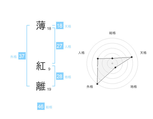 薄 紅離さんの天格は18画の4点!