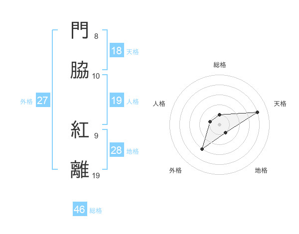門脇 紅離さんを姓名の画数から五運を鑑定