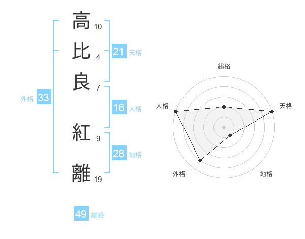 高比良 紅離さんの天格は21画の5点!