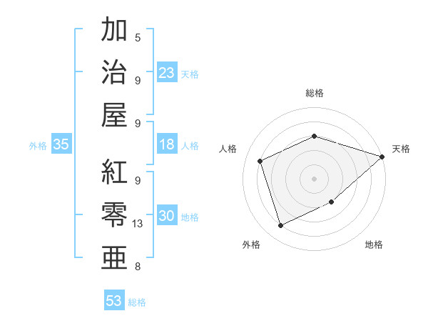 加治屋 紅零亜さんを姓名の画数から五運を鑑定