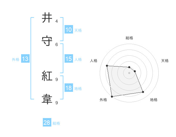 井守 紅韋さんを姓名の画数から五運を鑑定