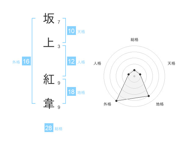 坂上 紅韋さんの総格は28画の1点!