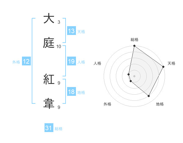 大庭 紅韋さんを姓名の画数から五運を鑑定