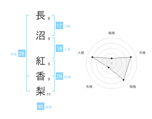 長沼 紅香梨さんを姓名の画数から五運を鑑定