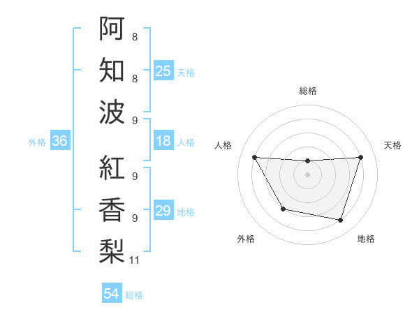 阿知波 紅香梨さんの天格は25画の4点!
