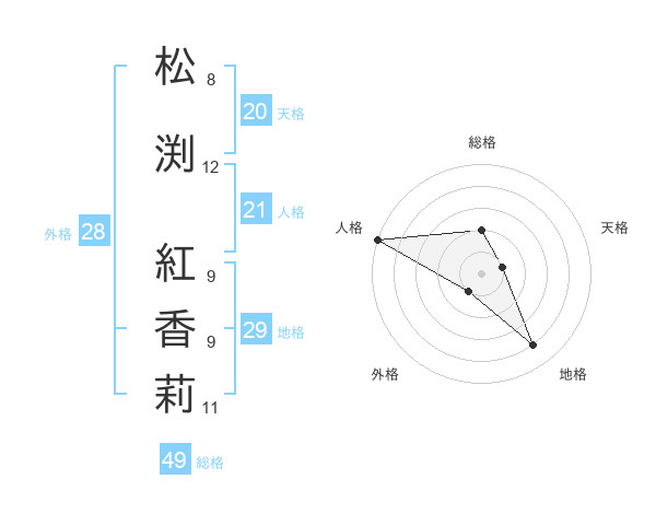 松渕 紅香莉さんを姓名の画数から五運を鑑定