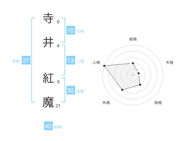 寺井 紅魔さんを姓名の画数から五運を鑑定