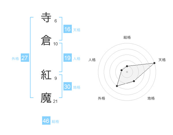 寺倉 紅魔さんの天格は16画の5点!
