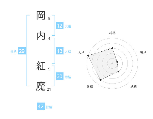 岡内 紅魔さんを姓名の画数から五運を鑑定