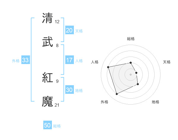清武 紅魔さんを姓名の画数から五運を鑑定