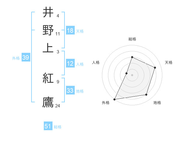 井野上 紅鷹さんを姓名の画数から五運を鑑定