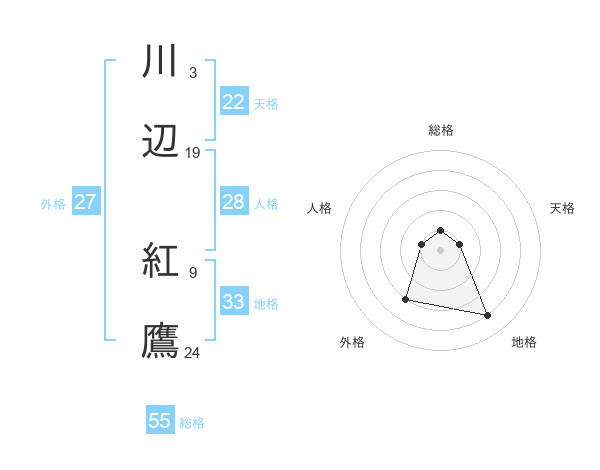 川辺 紅鷹さんを姓名の画数から五運を鑑定