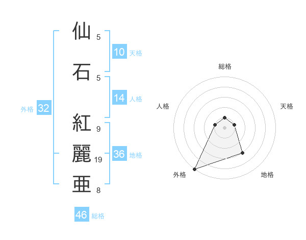 仙石 紅麗亜さんを姓名の画数から五運を鑑定
