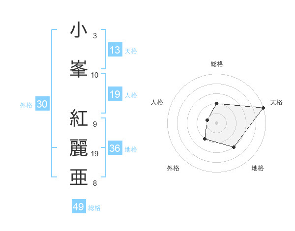 小峯 紅麗亜さんの天格は13画の5点!