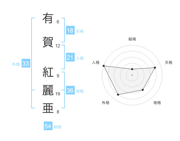 有賀 紅麗亜さんを姓名の画数から五運を鑑定
