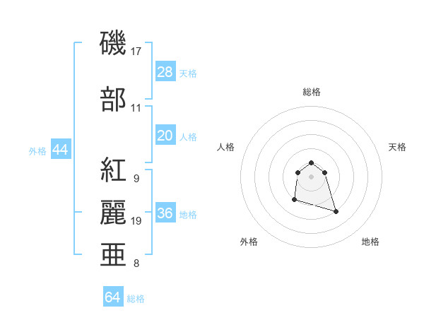 磯部 紅麗亜さんを姓名の画数から五運を鑑定