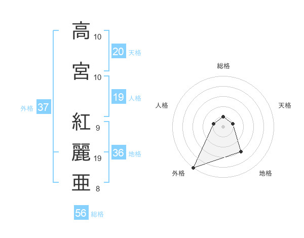 高宮 紅麗亜さんの外格は37画の5点