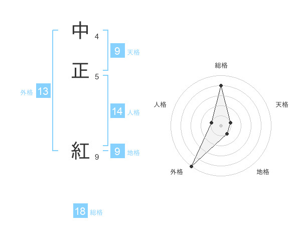 中正 紅さんの外格は13画の5点!