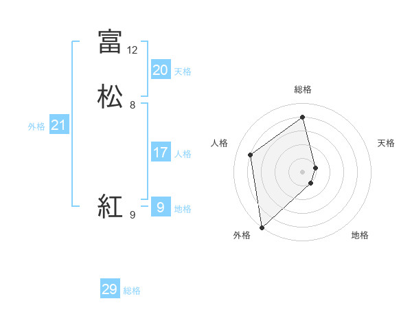 富松 紅さんの総格は29画の4点!