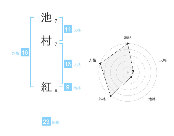 池村 紅さんの外格は16画の5点!