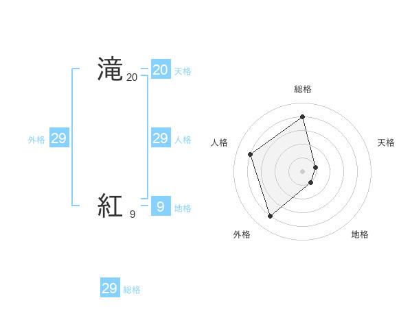 滝 紅さんの外格は29画の4点!