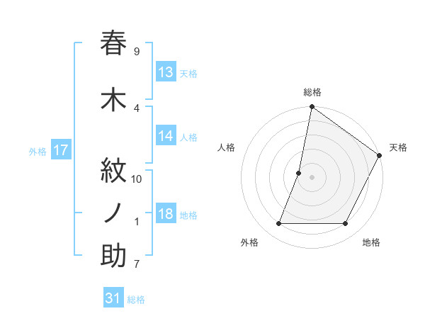 春木 紋ノ助さんを姓名の画数から五運を鑑定