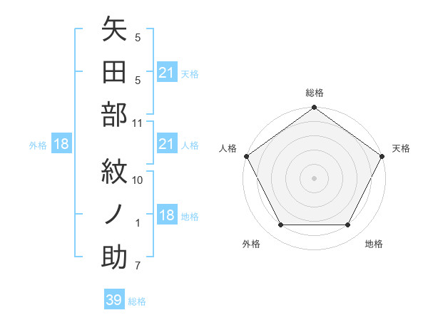矢田部 紋ノ助さんを姓名の画数から五運を鑑定