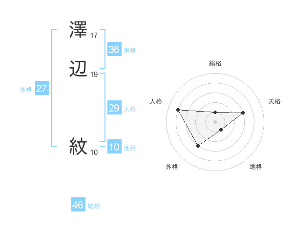澤辺 紋さんの天格は36画の3点!