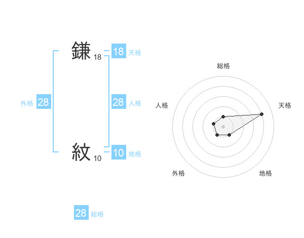 鎌 紋さんの天格は18画の4点!