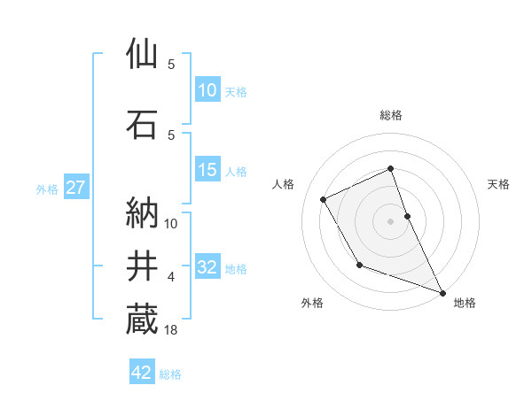 仙石 納井蔵さんを姓名の画数から五運を鑑定